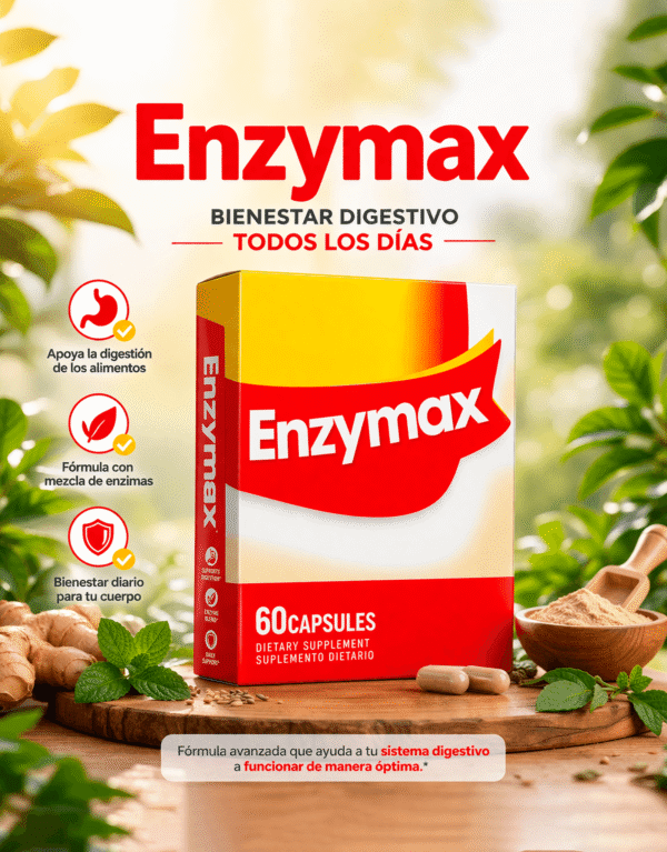 Enzymax es una fórmula de enzimas digestivas diseñada para apoyar una digestión más eficiente, ayudando al cuerpo a descomponer correctamente los alimentos y mejorar la absorción de nutrientes. Es ideal para personas con pesadez estomacal, gases, distensión abdominal o digestiones lentas.Añadir al carrito30 disponibles