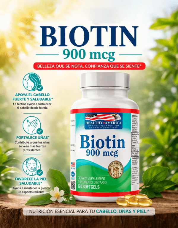 La biotina es una vitamina esencial del complejo B que fortalece el cabello, mejora la salud de la piel y endurece las uñas, ayudándote a lucir y sentirte mejor desde adentro.