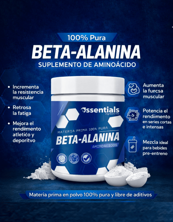 La Beta-Alanina de Essentials Ingredients es una materia prima 100% pura, ideal para quienes buscan aumentar la fuerza, resistencia y rendimiento muscular.