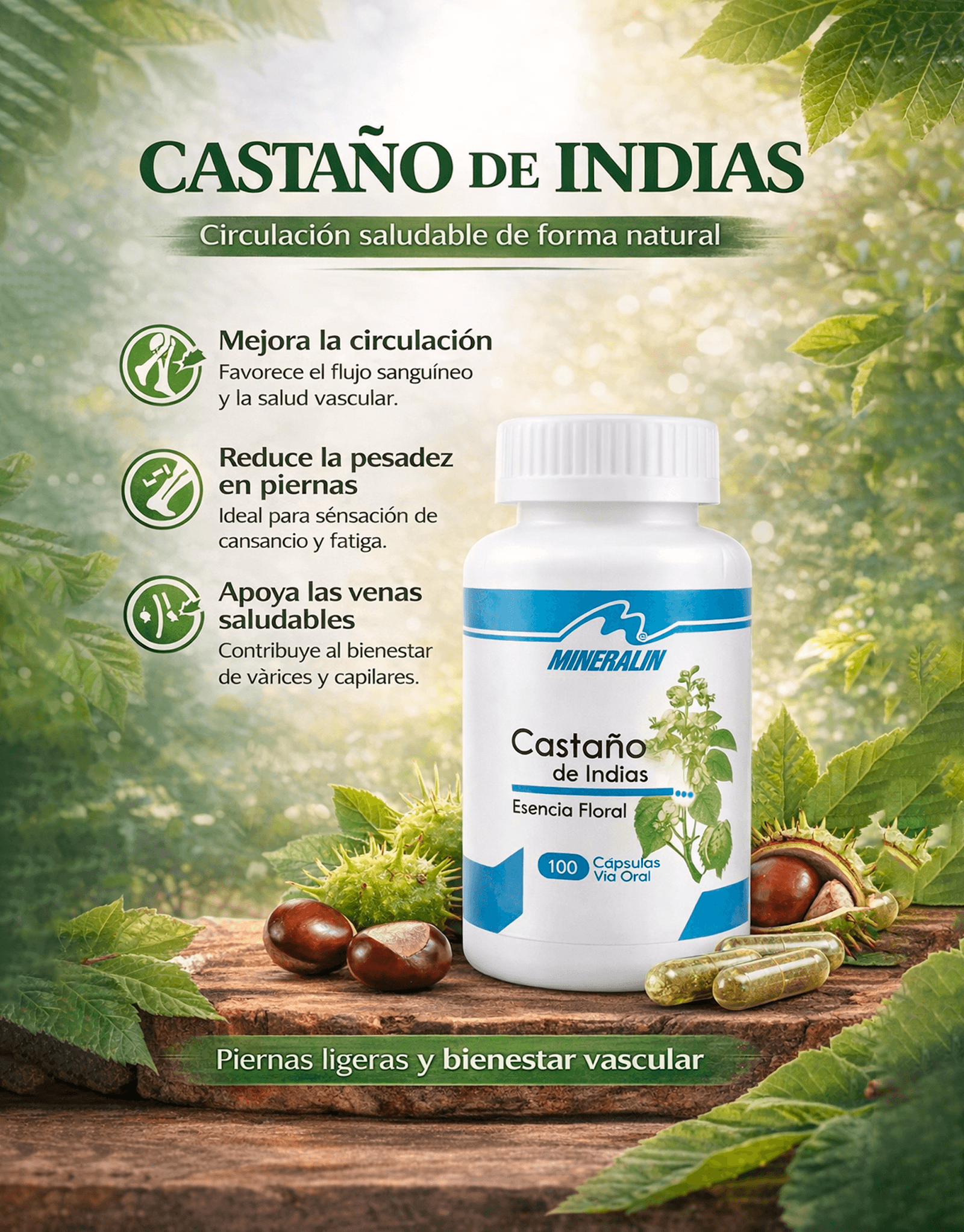 El castaño de indias es un potente aliado para la circulación que ayuda a aliviar la sensación de piernas pesadas, mejorar el flujo sanguíneo y fortalecer las venas de forma natural.