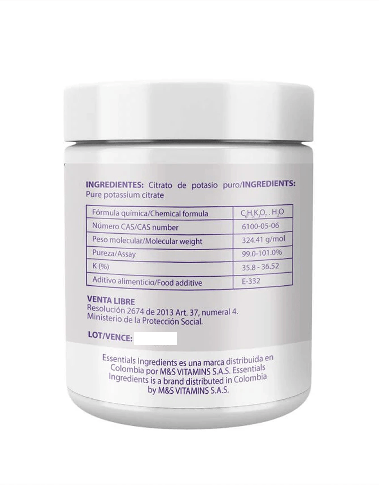 Citrato de Potasio 400g – Essentials