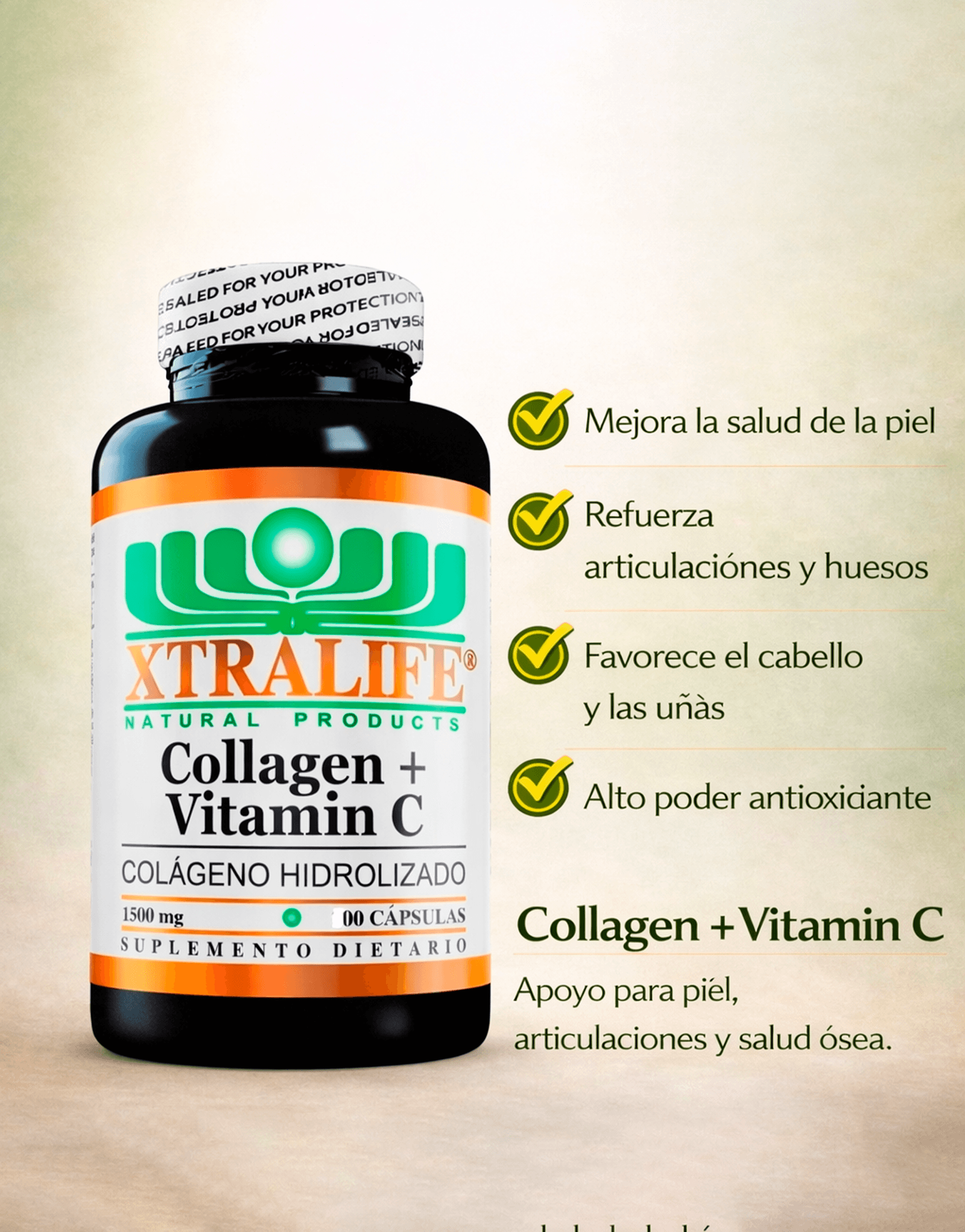 suplemento de Colágeno Hidrolizado Xtralife ofrece una fórmula concentrada de colágeno de fácil absorción, enriquecido con vitamina C para potenciar la síntesis natural de colágeno en el cuerpo. Ideal para quienes buscan mejorar la salud de su piel, cabello, uñas y articulaciones de forma natural.