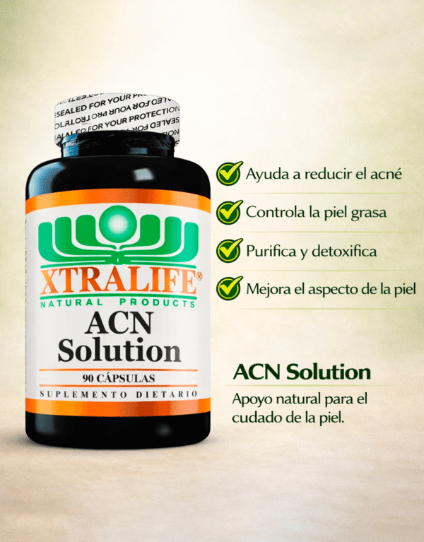 El suplemento Acn Solution Xtralife ofrece una fórmula completa de vitaminas y minerales esenciales para combatir el acné desde el interior, regulando la producción de sebo y favoreciendo la cicatrización de la piel. Ideal para quienes buscan una piel más limpia, saludable y libre de imperfecciones.