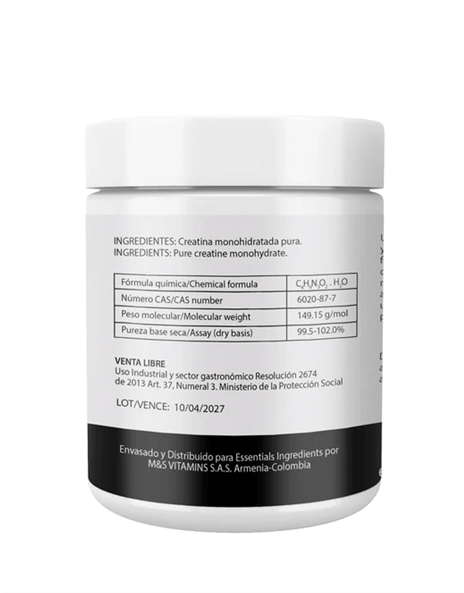 ✔ 100% Creatina Monohidratada pura – grado USP.