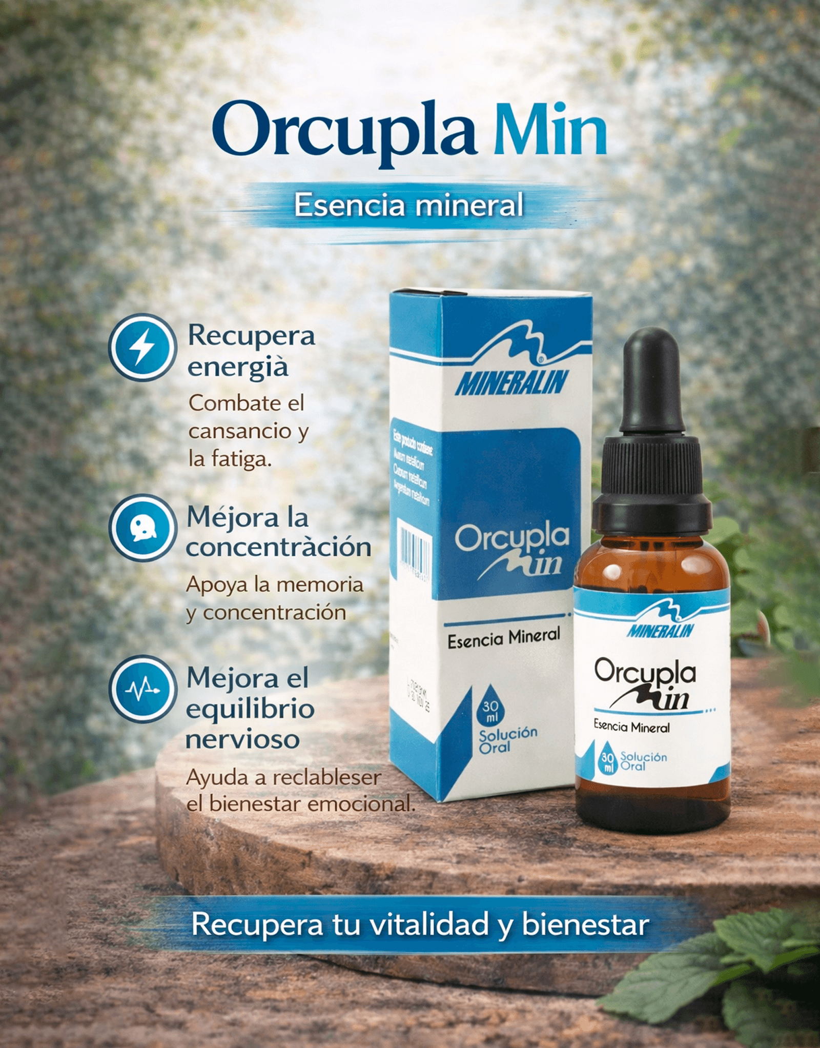 Orcuplamin es una esencia mineral diseñada para fortalecer tus defensas, recuperar la energía y apoyar el organismo en estados de debilidad, ayudándote a sentirte más fuerte y resistente frente a infecciones recurrentes.