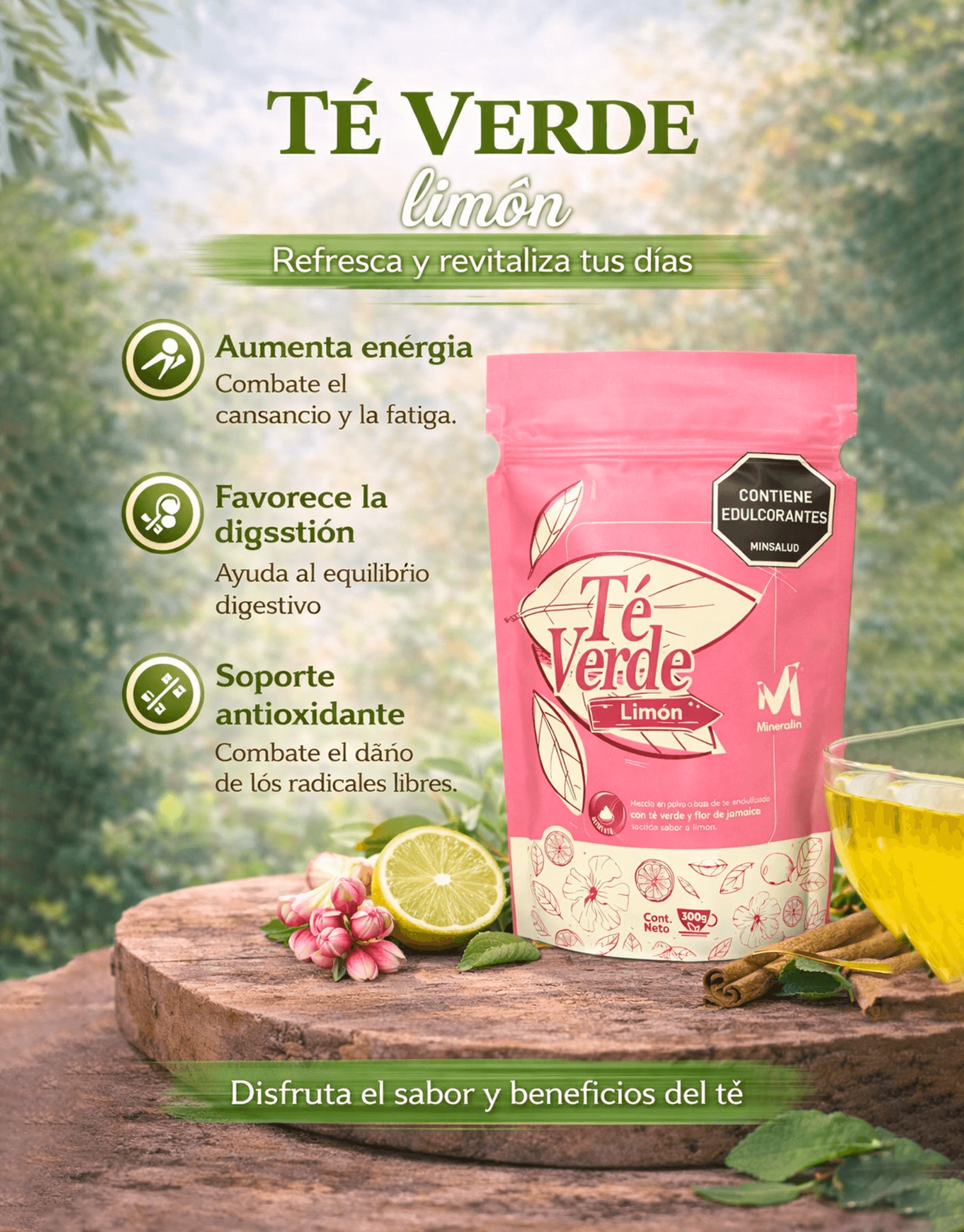Té Verde Limon Y Flor de Jamica polvo x 300g – Mineralin